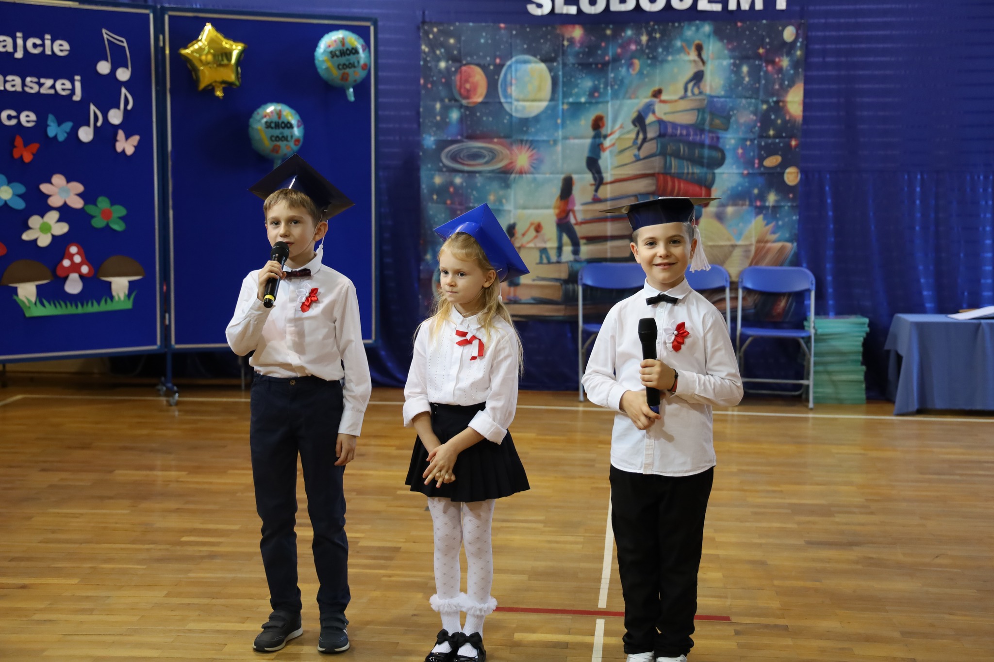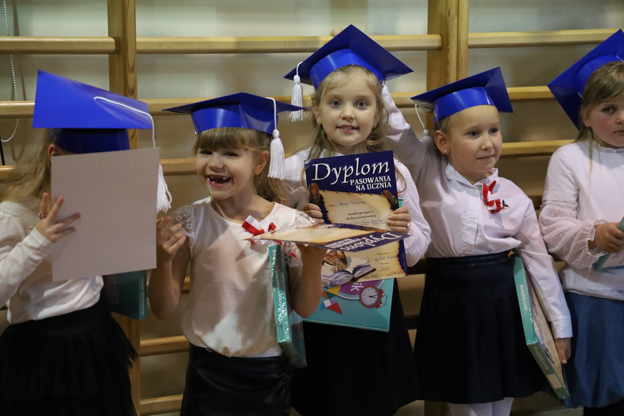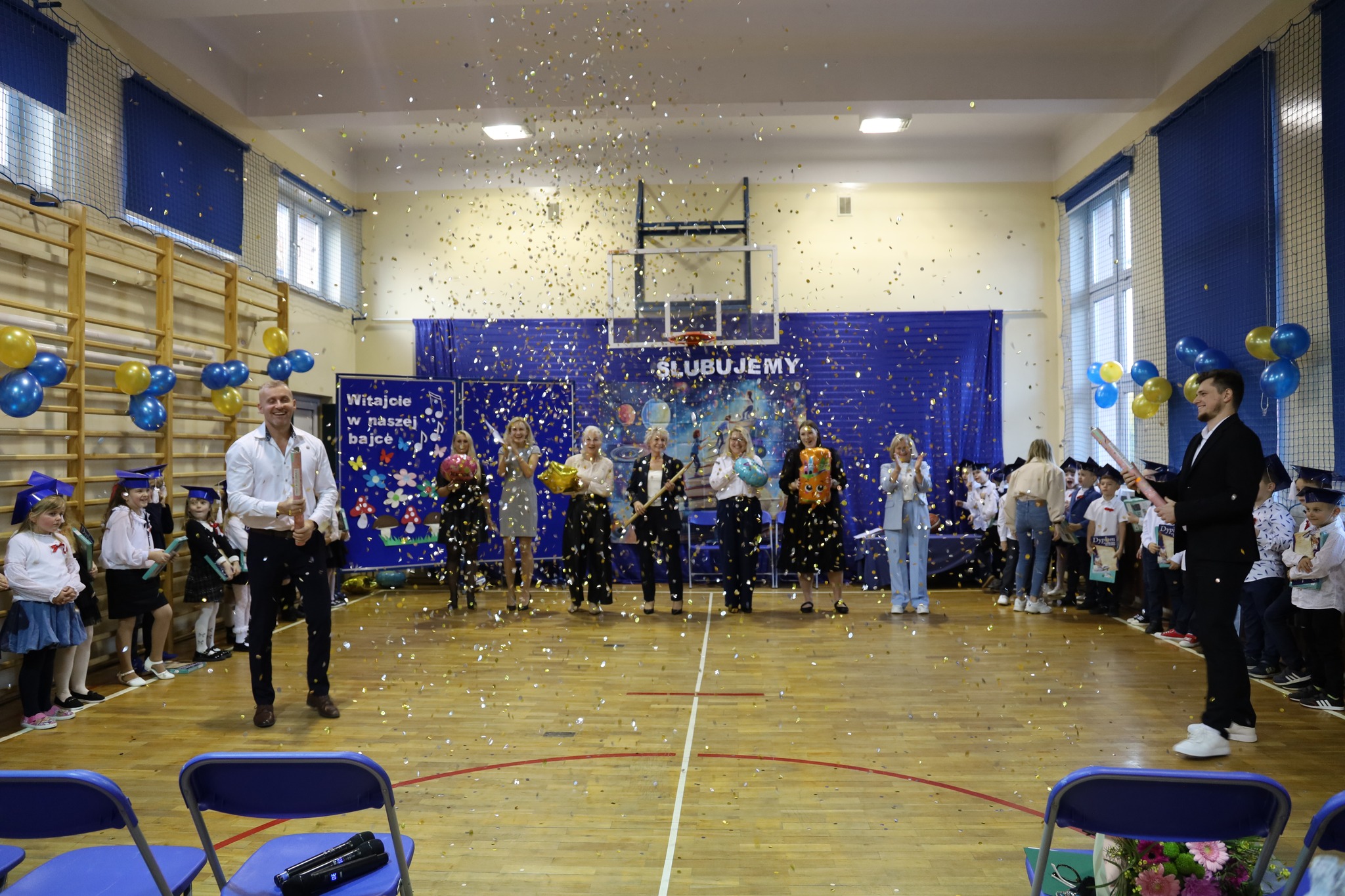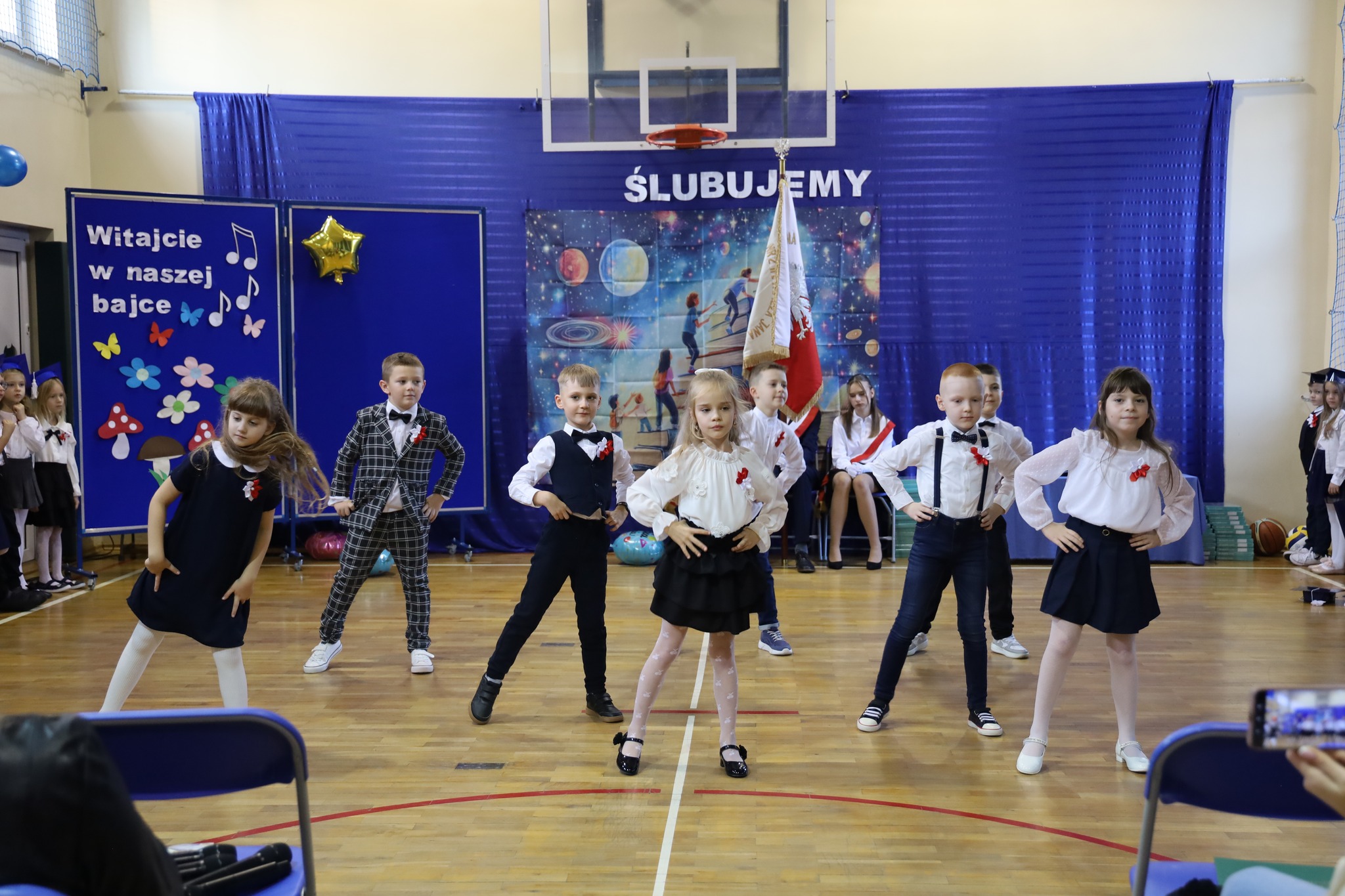 Po części artystycznej Pani Dyrektor Dorota Brzostek dokonała symbolicznego pasowania na ucznia, rozpoczynając nowy etap w szkolnym życiu dzieci.