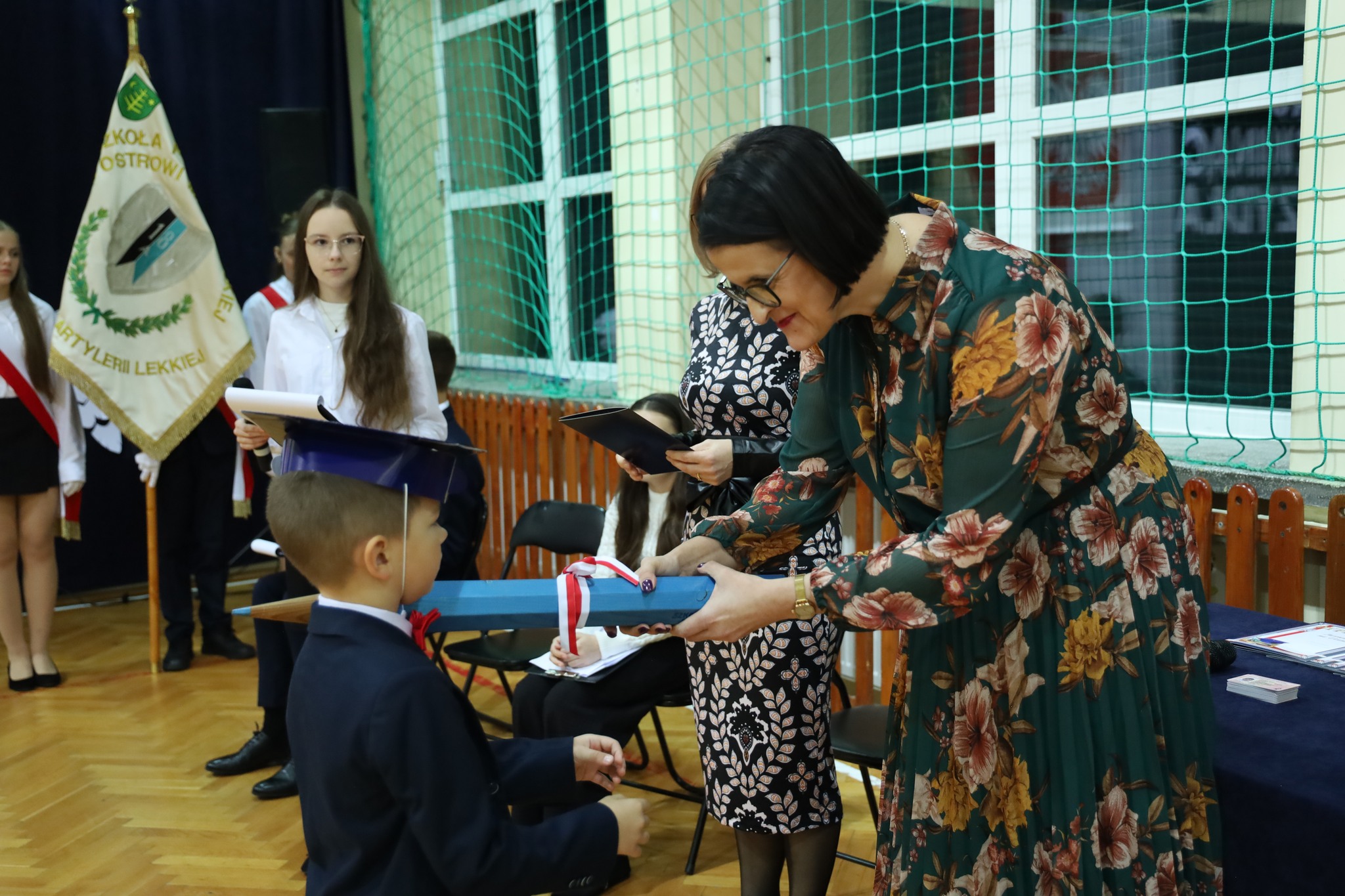 W wydarzeniu wzięła udział dyrektor Wydziału Oświaty, Kultury i Integracji Społecznej Katarzyna Krupińska, która przekazała dzieciom drobiazgi odblaskowe – tak ważne o tej porze roku – oraz słodki upominek. Rodzicom życzyła cierpliwości, wielu chwil pełnych radości i dumy z osiągnięć swoich dzieci, a do wychowawczyni klasy pierwszej skierowała słowa uznania i wsparcia za trudną, ale piękną pracę, pełną empatii i poświęcenia.