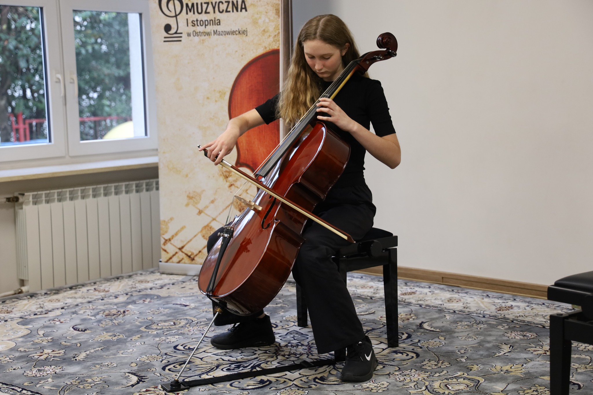 Publiczność mogła również usłyszeć Maję Kilanowską – uczennicę klasy drugiej, która zaprezentowała utwór na wiolonczeli.