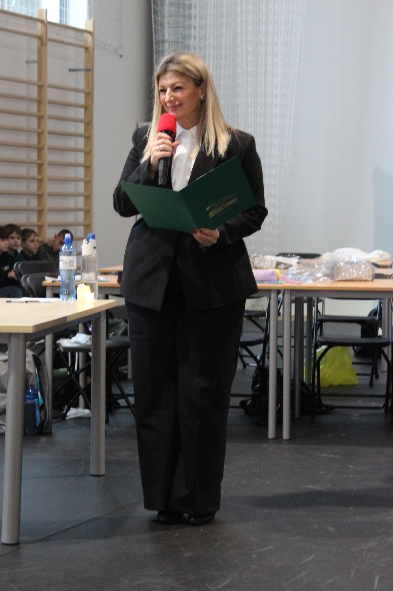 Po przedstawieniu głos zabrała Marzena Osiecka, jedna z osób przygotowujących jasełka. Skierowała serdeczne życzenia do zaproszonych gości, dyrekcji, grona pedagogicznego i wszystkich pracowników szkoły, dziękując za codzienny trud i zaangażowanie w kształtowanie młodych umysłów i serc. Uczniom życzyła radości, mądrości oraz otwartości na potrzeby innych, by przez ich postawę Jezus mógł odnajdywać drogę do ludzi smutnych i potrzebujących.