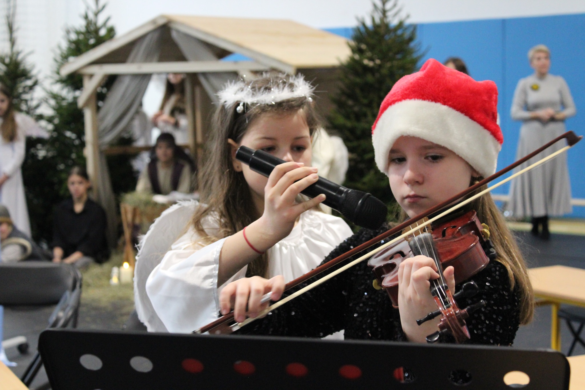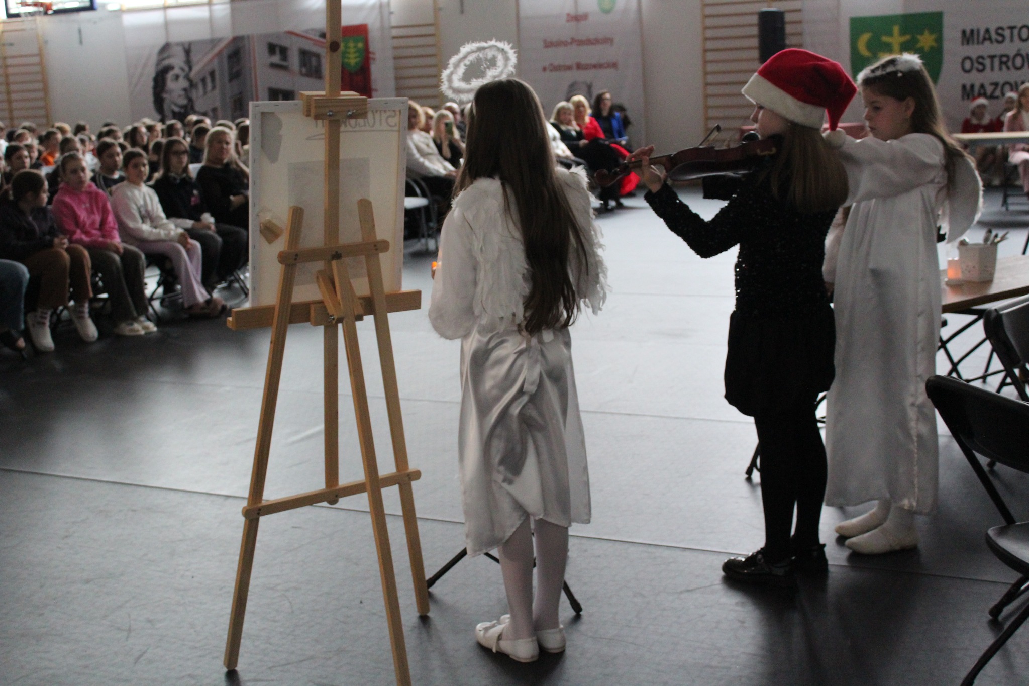 Wśród gości była także Katarzyna Krupińska, Dyrektor Wydziału Oświaty, Kultury i Integracji Społecznej. Z uznaniem mówiła o występie uczniów, pracy nauczycieli, scenografii i chórze szkolnym. W imieniu burmistrza Huberta Betlejewskiego przekazała świąteczne życzenia spokoju, miłości i odpoczynku.