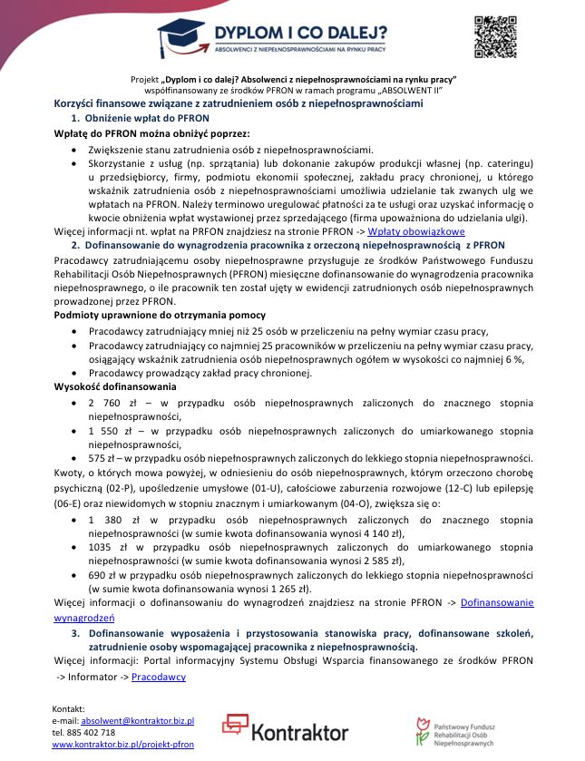 W ramach projektu „Dyplom i co dalej? Absolwenci z niepełnosprawnościami na rynku pracy” istnieje możliwość nawiązania współpracy z absolwentami szkół wyższych z niepełnosprawnościami – osobami przygotowanymi do podjęcia pracy i rozwoju w Twojej firmie.
