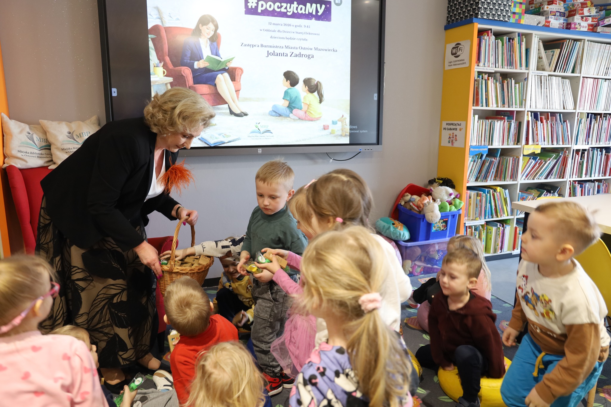 12 marca w Oddziale dla Dzieci w Starej Elektrowni odbyło się kolejne spotkanie w ramach czytelniczej akcji. Tym razem najmłodszych odwiedziła Zastępca Burmistrza Miasta Ostrów Mazowiecka – Jolanta Zadroga, która przeczytała dzieciom pełną humoru książkę „Cukierku, Ty łobuzie!”.