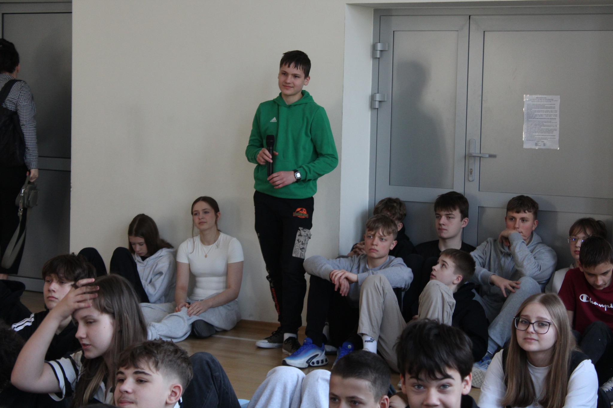 Gość opowiedział młodzieży o swojej drodze zawodowej i specyfice pracy w mediach lokalnych, podkreślając dużą odpowiedzialność za słowo w małej społeczności. Uczniowie pytali m.in. o ścieżkę kariery dziennikarskiej, codzienną pracę reportera oraz wyzwania związane z prowadzeniem portalu.