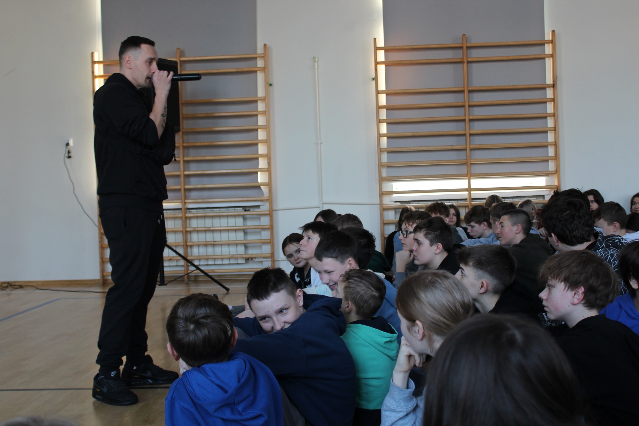 12 stycznia uczniowie klas 6, 7 i 8 Zespół Szkolno-Przedszkolny w Ostrowi Mazowieckiej mieli okazję spotkać się z nietypowymi gośćmi. Do szkoły przyjechali Rymcerze, czyli duet Bęsiu i DJ Yonas, raperzy znani z projektu profilaktycznego „Nie Zmarnuj Swojego Życia”. Ich wizyta była czymś więcej niż koncertem. To było spotkanie, które miało zostawić w głowie kilka ważnych myśli na dłużej.